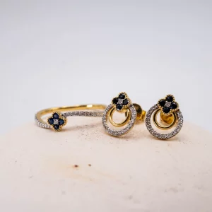 Piedra: Topacio Azul de 7 x 5 mm y 4 Circonitas de 3 mm y 2.50 mm .